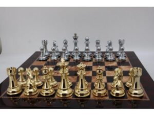 Each piece is cast in high-quality pewter, a metal known for its durability and timeless appeal. The intricate design captures the essence of mythical dragons, featuring scales, wings, and formidable expressions that evoke a sense of power and mystique. The pewter material adds a touch of elegance to the chess set, making it a striking addition to any chess enthusiast’s collection.