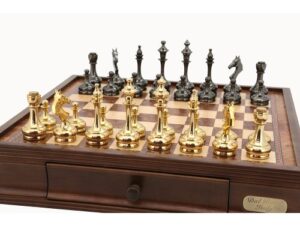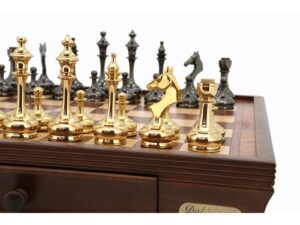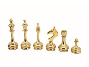 Indulge in the opulence of the Dal Rossi Italy Staunton Metal and Wood Gold Chessmen. Crafted with meticulous precision, these exquisite 100mm chess pieces combine the richness of wood with the elegance of gold accents, exuding sophistication and luxury. Ideal for enthusiasts and collectors seeking both style and quality, these chessmen promise to elevate your gaming experience with their stunning design and timeless appeal. Whether displayed as a collector’s item or used for gameplay, the Dal Rossi Italy Staunton Metal and Wood Gold Chessmen are sure to impress with their exquisite craftsmanship and grandeur.